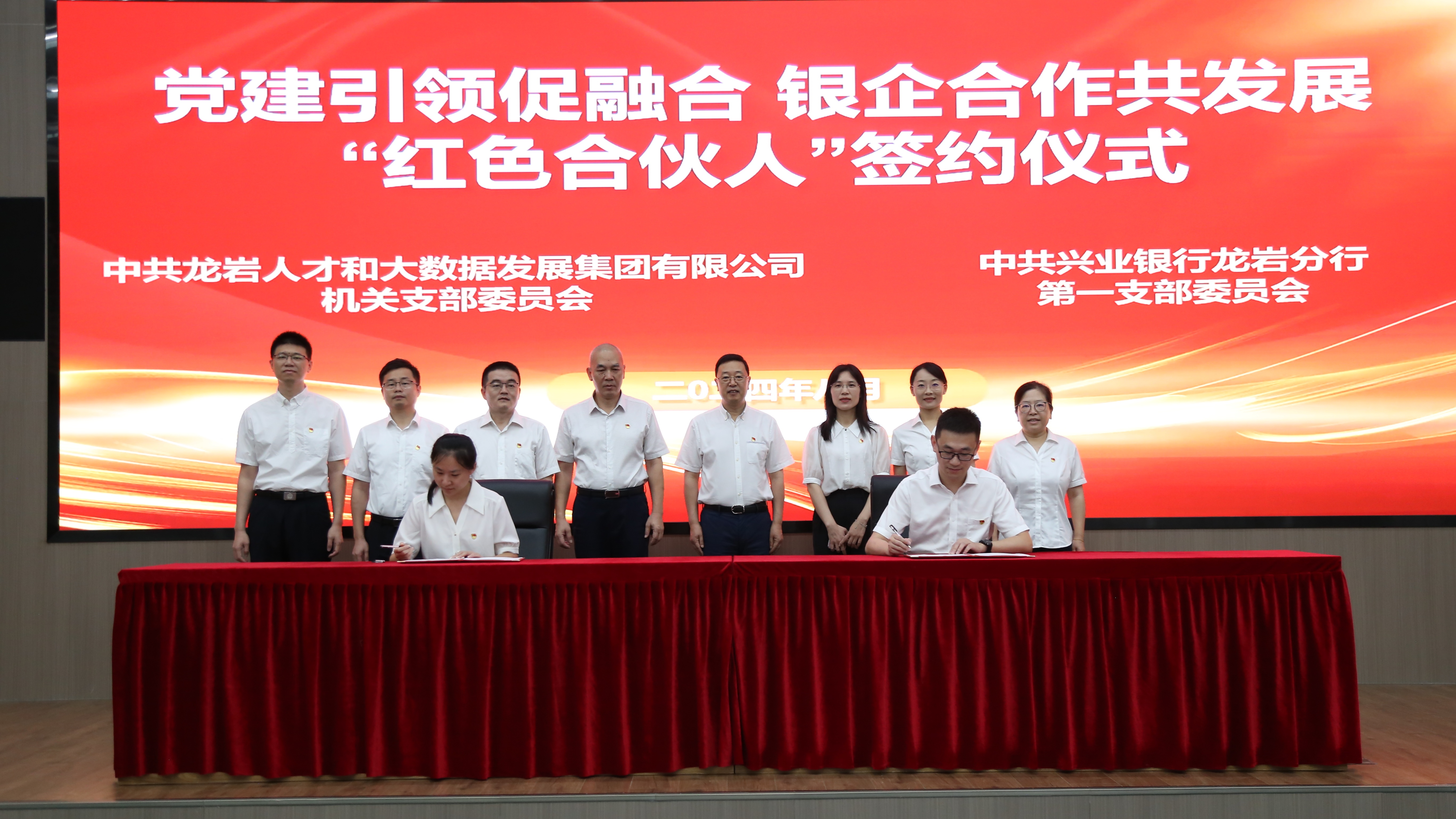 为深入学习贯彻习近平新时代中国特色社会主义思想和党的二十届三中全会精神,巩固主题教育成果,深化党纪学习教育,提升党组织党建工作质效,2024年8月2日,龙岩人才和大数据集团机关党支部与兴业银行龙岩分行第一党支部签署“红色合伙人”党建共建合作协议。