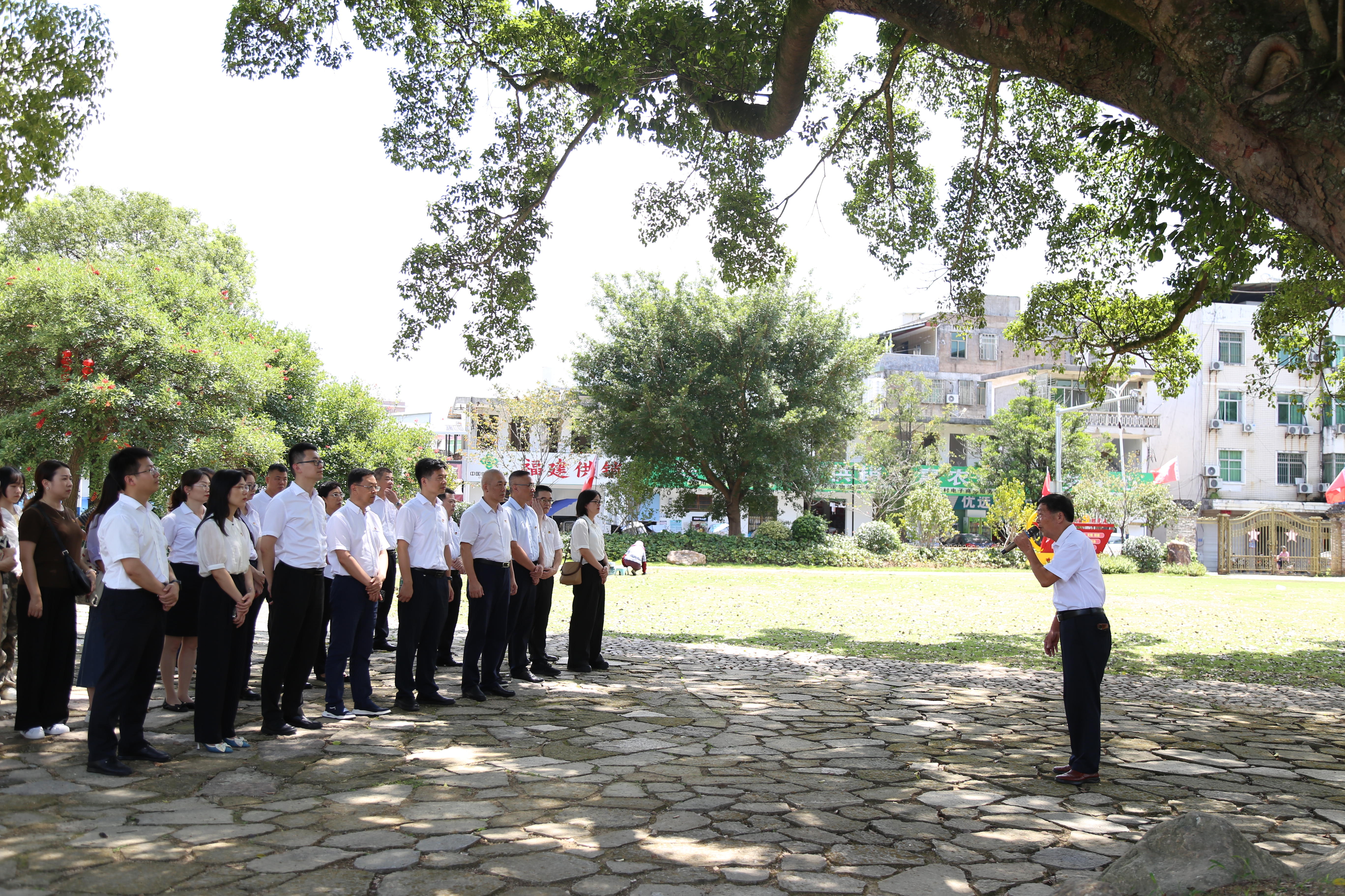 榕树下,双方党员齐聚一堂,共同聆听红四军在新泉的光辉事迹,于革命历史中感悟先辈们对理想的执着追求和对信念的坚定坚守。党员们纷纷表示:将大力弘扬爱国拥军的优良传统,把感动的精神力量转化成工作奋斗前行的动力,不忘初心、砥砺前行。