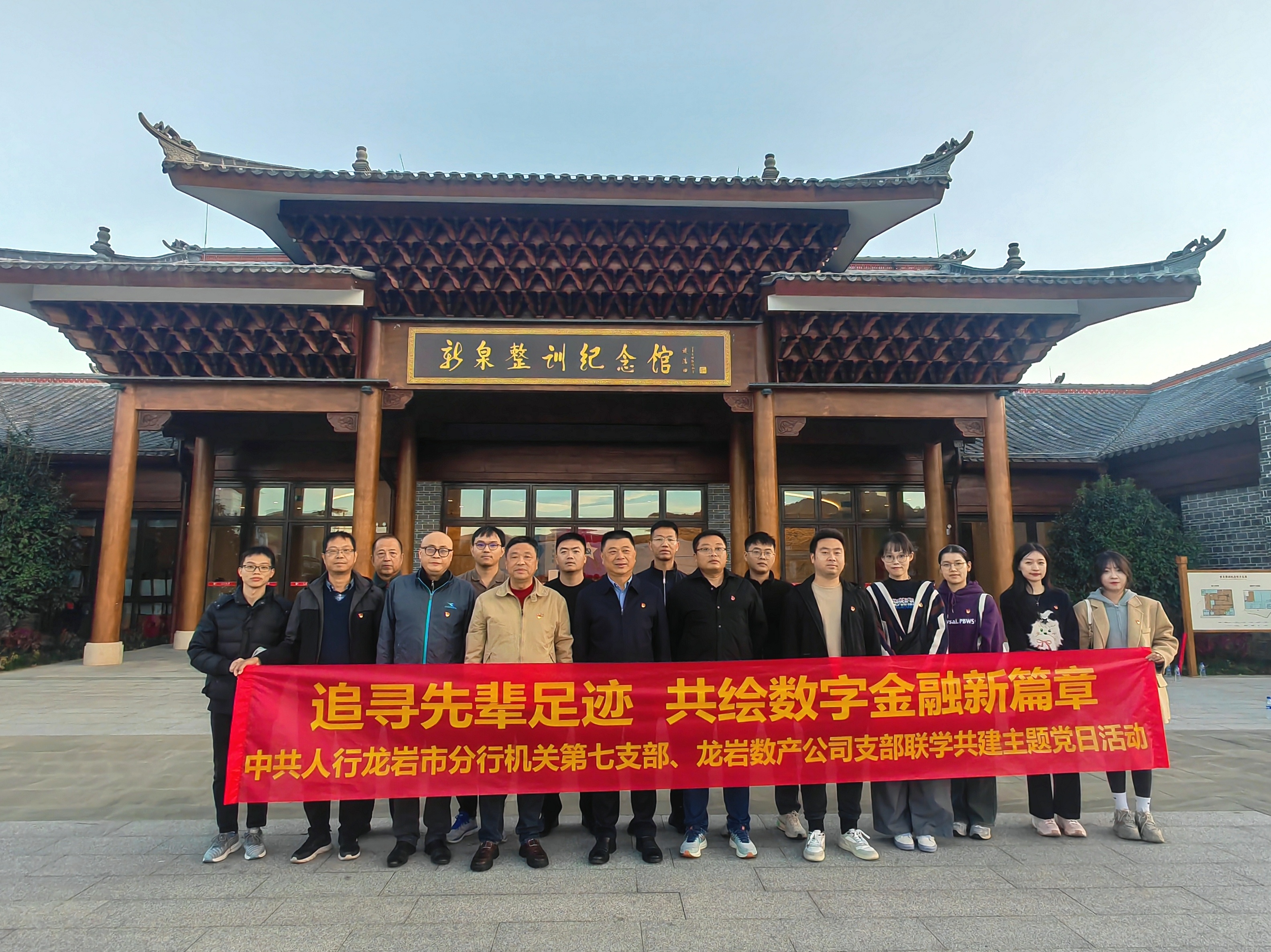 2024年11月29日,龙岩数字产业发展有限公司党支部与中国人民银行龙岩市分行机关第七支部在连城县新泉镇开展了以“追寻先辈足迹,共绘数字金融新篇章”为主题的联学共建主题党日活动。此次活动旨在通过追寻革命先辈的足迹,回溯党的奋斗历程,激励党员干部以对党忠诚、政治坚定的革命精神,共同推动龙岩数字金融高质量发展。