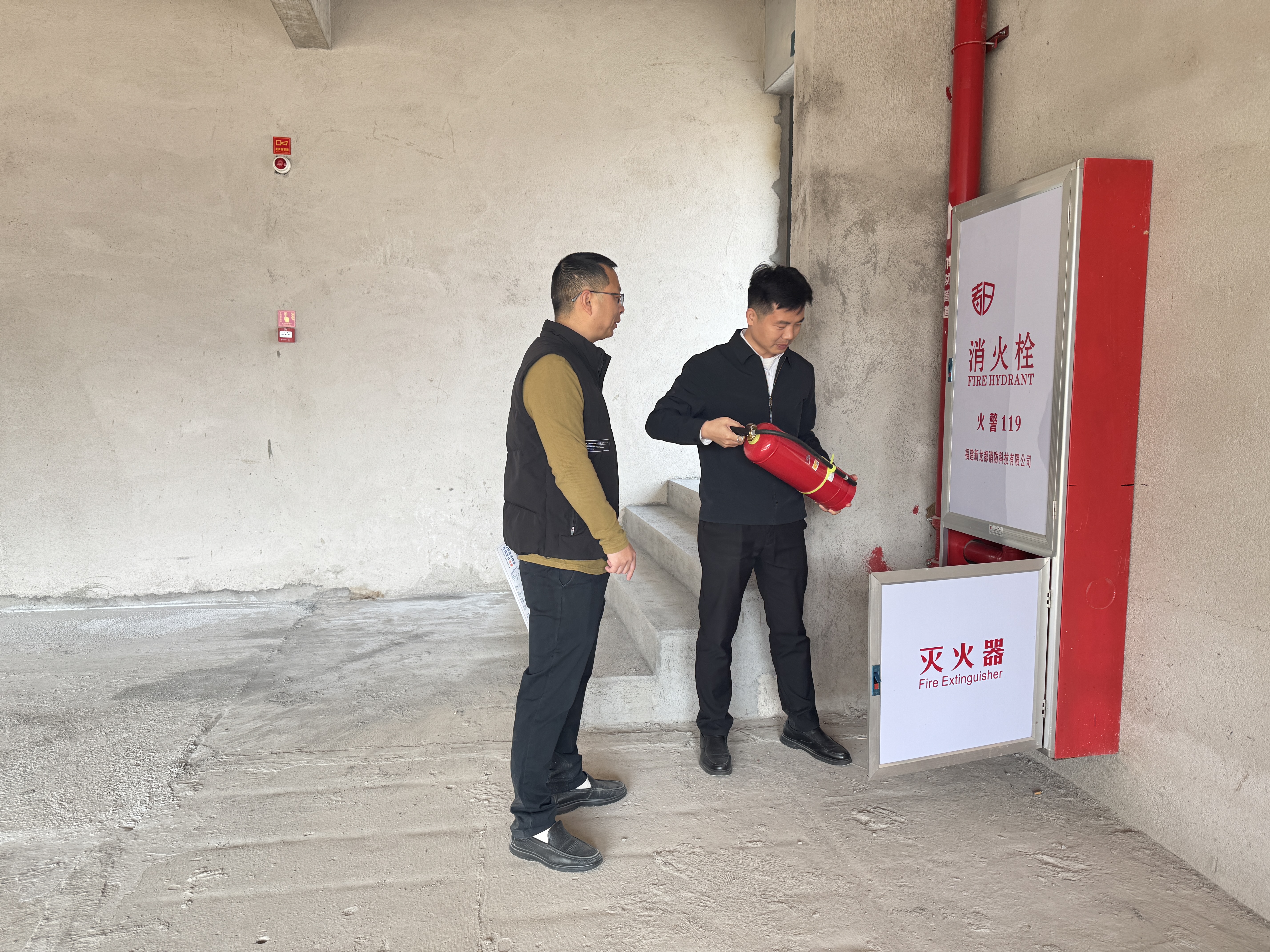检查组深入园区4#、6#楼装修施工现场,细致查验消防设施配备、用电安全管理及施工材料合规性,要求施工单位严格落实安全主体责任,加强隐患排查与人员培训,杜绝违规作业。随后,检查组对园区物业日常巡查台账、设备维保记录及消控室值班制度执行情况展开督查,强调须确保24小时人员在岗、应急处置机制畅通。