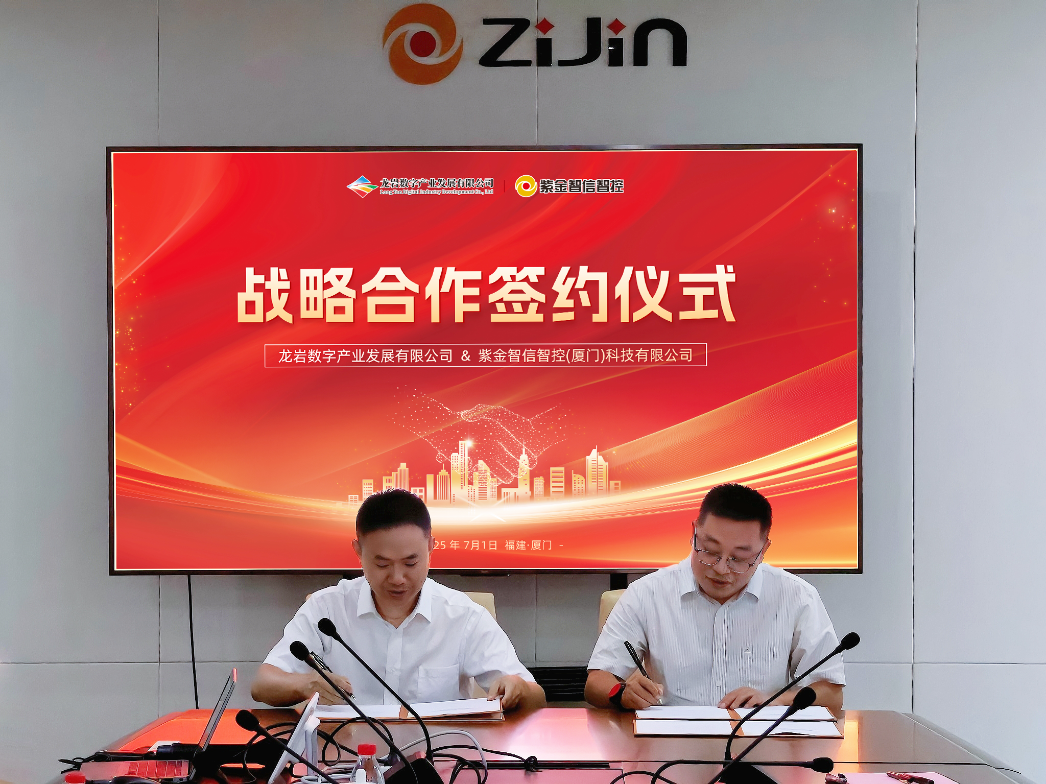 7月1日,龙岩人才和大数据集团权属子公司龙岩数字产业发展有限公司与紫金矿业集团权属子公司紫金智信智控(厦门)科技有限公司战略合作签约仪式圆满举行。