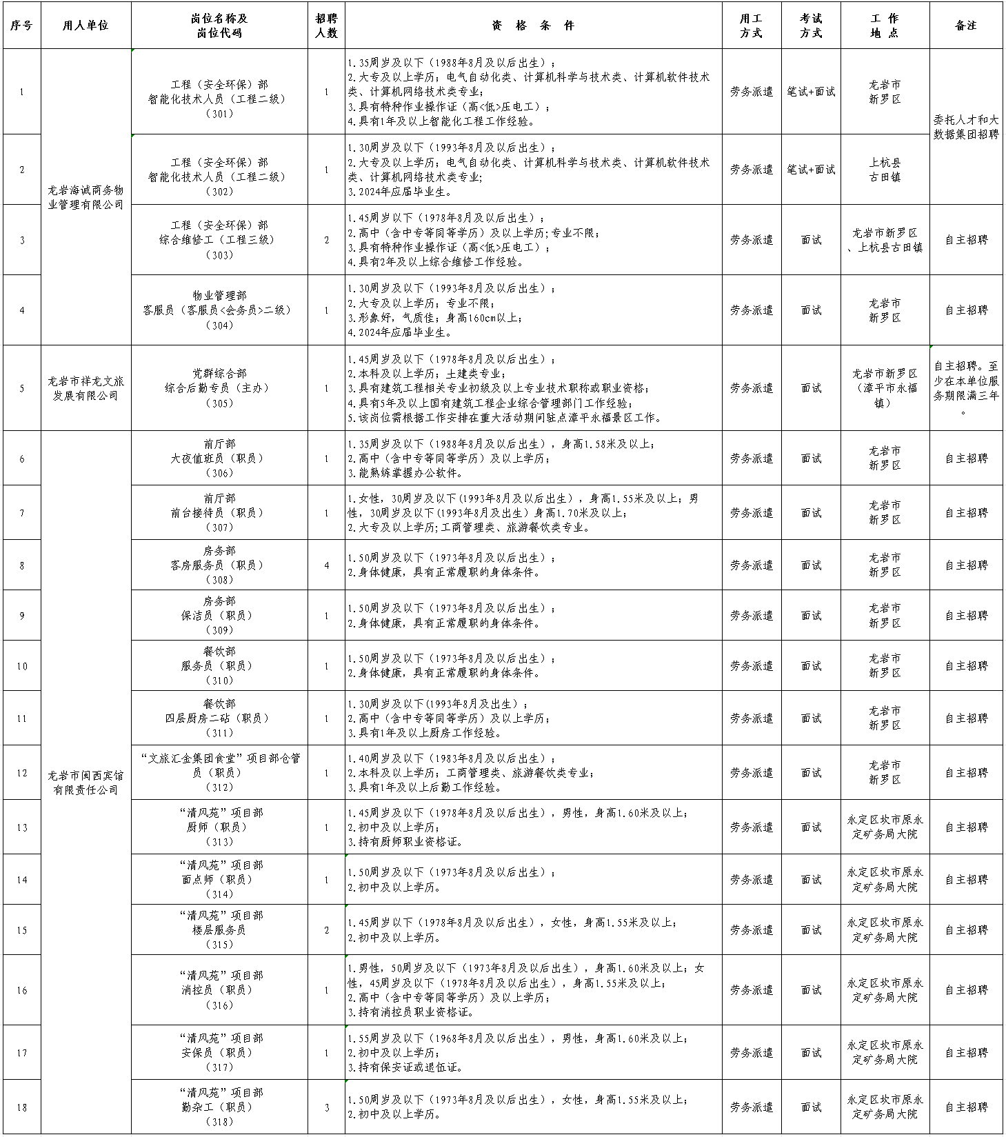 ①龙岩海诚商务物业管理有限公司(303-304岗)