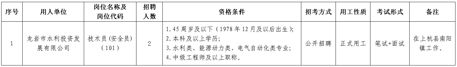 龙岩投资发展集团有限公司是市委、市政府整合机械制造、矿产资源开发、新能源、电子信息、水利水电等产业类股权投资职能和招商引资、科技孵化、创业投资等职能组建的市属国有资本投资集团。现因业务发展需要,拟公开招聘集团所属企业工作人员2名,现将有关事项公告如下: