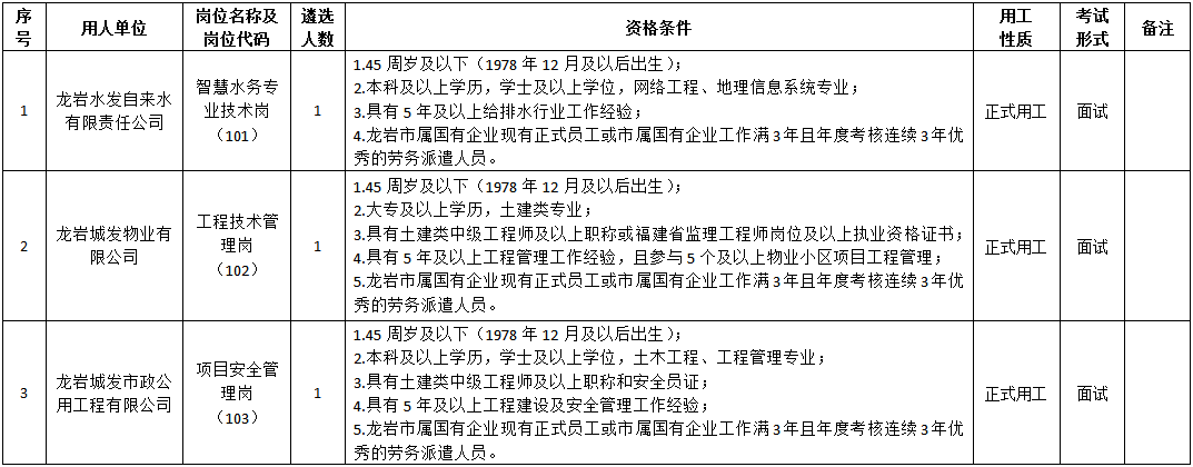 (1)《龙岩城市发展集团有限公司所属企业公开遴选工作人员报名表》1份(点击文末“阅读原文”下载);