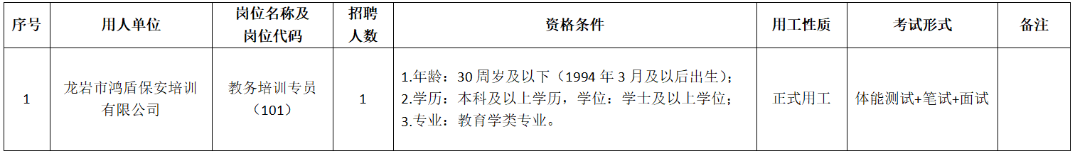 (1)《龙岩市鸿盾保安服务集团有限公司公开招聘工作人员报名表》1份(见附件);
