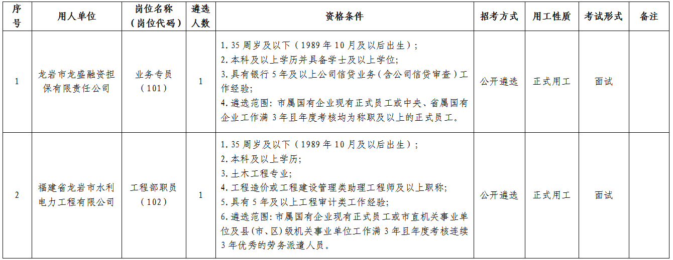 3.本次公告仅适用于本次公开遴选工作,由龙岩投资发展集团有限公司、龙岩人才和大数据发展集团有限公司负责解释。