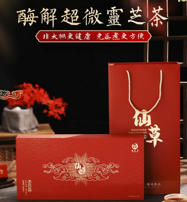 酶解超微紫灵芝茶:原料灵芝选用椴木进行育苗、原始森林种植的方式种植,近野生培育,在孢子粉即将喷射之际,将整朵灵芝进行采摘,既包含了整朵灵芝的营养成分,又包含了孢子的营养物质,故营养物质更全面。