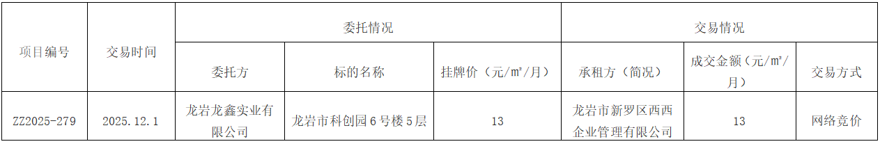 2025年12月1日网络竞租龙岩市新罗区东肖镇曲潭路15号房产成交公示
