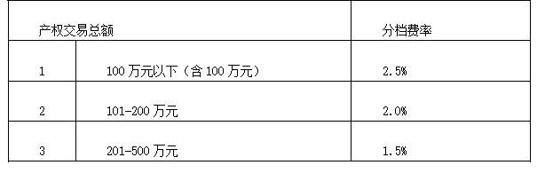 产权交易佣金收费表: