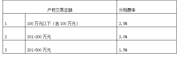 产权交易佣金收费表: